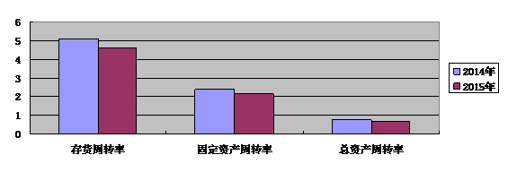 從資產(chǎn)狀況分析,2015年上市公司資產(chǎn)使用效率持續(xù)走低,存貨余額增加,存貨周轉(zhuǎn)率、固定資產(chǎn)周轉(zhuǎn)率、總資產(chǎn)周轉(zhuǎn)率均下滑(詳見(jiàn)圖1)。存貨余額為938.74億元,同比增長(zhǎng)3.18%,存貨周轉(zhuǎn)天數(shù)為79.35,同比增加7.64;應(yīng)收賬款周轉(zhuǎn)天數(shù)為34.34,同比增加5.8。數(shù)據(jù)表明,上市公司總體產(chǎn)能過(guò)剩問(wèn)題依然突出,企業(yè)產(chǎn)能利用率下降,去庫(kù)存壓力依然較大,個(gè)別公司以賒銷(xiāo)方式去庫(kù)存導(dǎo)致資金回籠放緩,資產(chǎn)質(zhì)量下降。